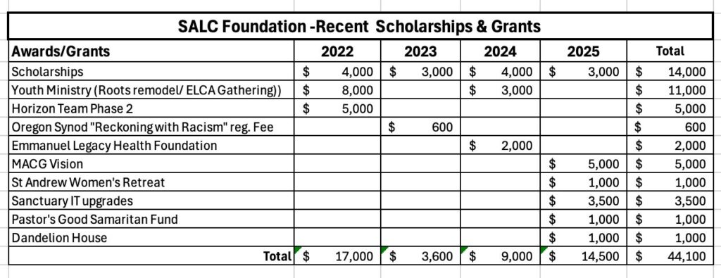 • Provides funding for creative worship, education and outreach that are in alignment with St. Andrew values.